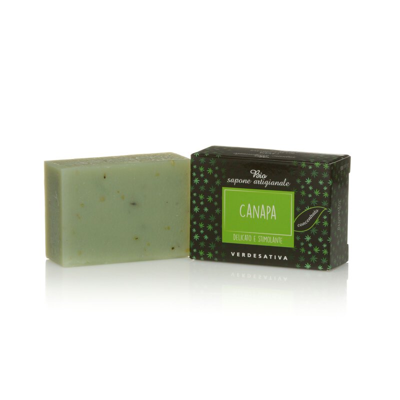 Bio Sapone alla Canapa Verdesativa stimolante. Azione altamente stimolante. Prodotto artigianale, tagliato a mano. 100% eco-naturale e biodegradabile. Conf. da 100g.